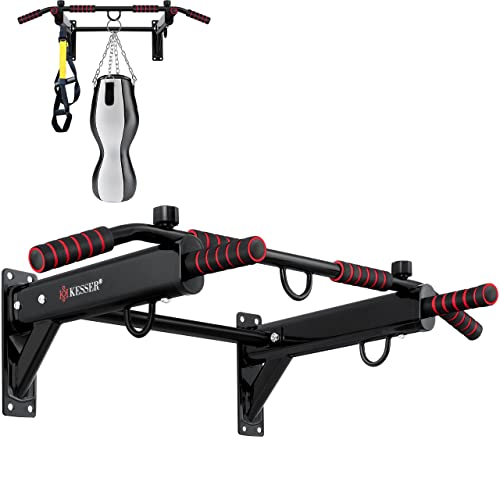 in KlimmzugstangenKESSER® 4in1 Klimmzugstange zur Wandmontage rutschfesten Griffen zusätzliche Funktion für Seile Ringe und Boxsäcke mit verschiedenen Griffpositionen | sicher & stabil | Pull Up Bar für zuhauseRot