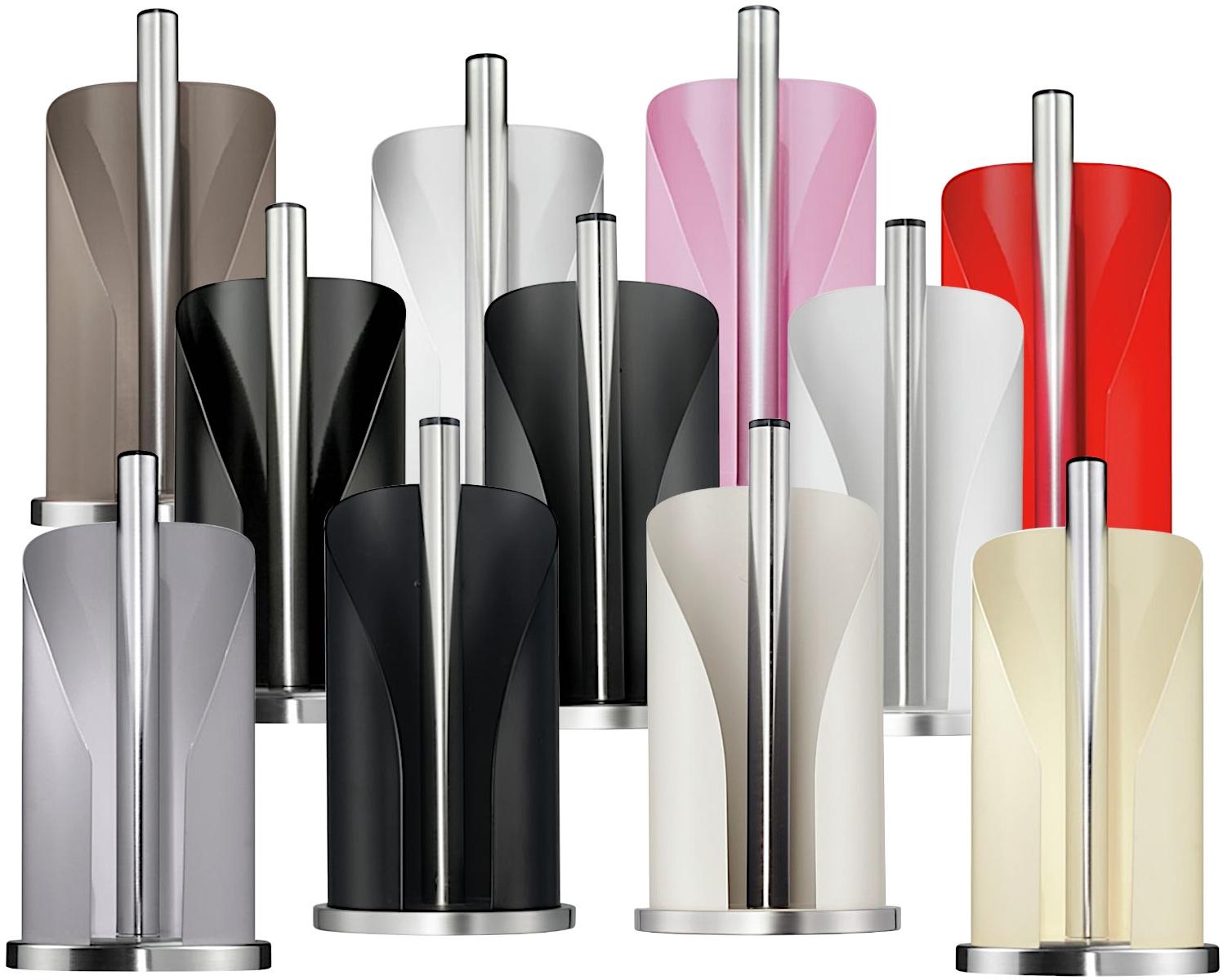 - Der Wesco Papierrollenhalter besteht aus einem typischen Materialmix aus Edelstahl und farbig lackiertem Stahlblech.