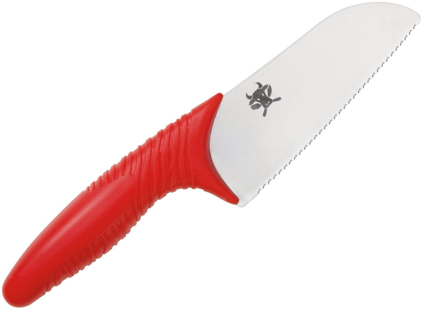 | Beschreibung | Das Kai Tim Mälzer Junior Kochmesser ist ideal für Kinder ab 6 Jahren, um ihnen den sicheren Umgang mit Küchenwerkzeugen beizubringen. Mit einer Klingenlänge von 11 cm und einem ergonomisch geformten, rutschfesten Griff liegt es gut in kleinen Händen. Die rostfreie Edelstahlklinge mit Wellenschliff erleichtert das Schneiden, während die abgerundete, stumpfe Spitze und das stumpfe Ende das Verletzungsrisiko minimieren. Ein flexibler Fingerschutz sorgt für zusätzlichen Schutz. **Highlights** - Für Kinder ab 6 Jahren - Rutschfester, ergonomisch geformter Griff - Rostfreie Edelstahlklinge mit Wellenschliff - Abgerundete, stumpfe Spitzen und stumpfes Ende zur Verringerung des Verletzungsrisikos - Mit flexiblem Fingerschutz **Produkteigenschaften** - Klingenlänge: 11 cm - Grifflänge: 10 cm - Material: Edelstahl - Farbe: Rot - Hersteller-Artikelnummer: TMJ-1000 **Lieferumfang** - 1 Junior Kochmesser - 1 Finger Protector - 1 hochwertige Messertasche |