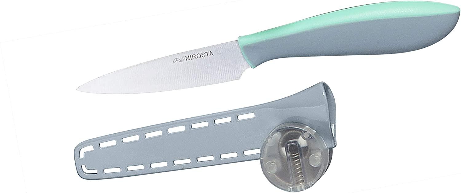 Nirosta Spickmesser EVERSHARPKüchenmesser aus Edelstahl mit Soft-Touch Griff, mit nachschärfendem Klingenschutz, Allzweckmesser mit ewig scharfer Klinge (Klingenlänge: ca. 9 cm), Menge: 1 Stück