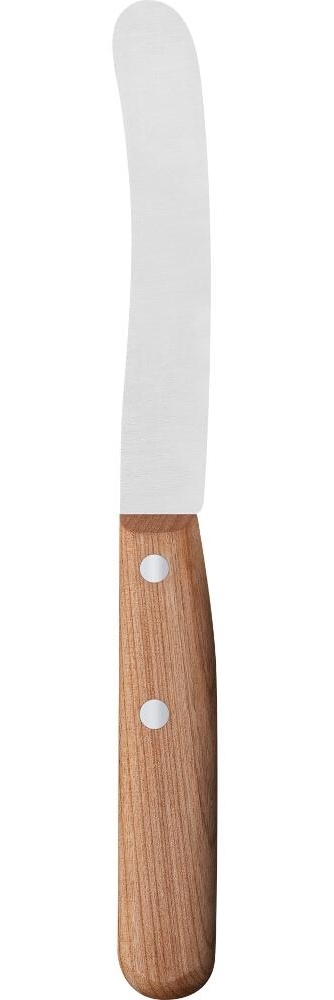 Das Windmühlenmesser Kirsche KLEINE Buckels Messer ist ein hochwertiges Frühstücksmesser mit einer 10 cm langen Klinge aus Chrom-Molybdän-Vanadium Stahl. Der Griff aus gedämpftem Kirschholz liegt angenehm in der Hand und ist mit 2 Nieten befestigt. Die Klinge ist handgeschärft und verfügt über einen Solinger Dünnschliff. Bitte per Hand spülen und gut abtrocknen, nicht spülmaschinengeeignet. Einreiben des Griffs mit Pflegeöl bei Bedarf. Nicht zum Hacken von harten Materialien verwenden, nur auf weichen Schneidunterlagen benutzen. **Highlights** - Hochwertige Materialien: Klinge aus Chrom-Molybdän-Vanadium Stahl - Handgeschärft: Präziser Solinger Dünnschliff - Pflegeleicht: Griff aus gedämpftem Kirschholz - Vielseitig einsetzbar: Ideal als Frühstücksmesser - Traditionelle Herstellung: Hergestellt von Herder Windmühlenmesser, Solingen **Produkteigenschaften** - Länge der Klinge: 10 cm - Material Griff: Kirschholz - Schliff: beidseitig angeschliffen - Pflegehinweis: Einreiben des Griffs mit Pflegeöl bei Bedarf - Nicht spülmaschinengeeignet - Geeignet für weiche Schneidunterlagen wie Holz oder Kunststoff