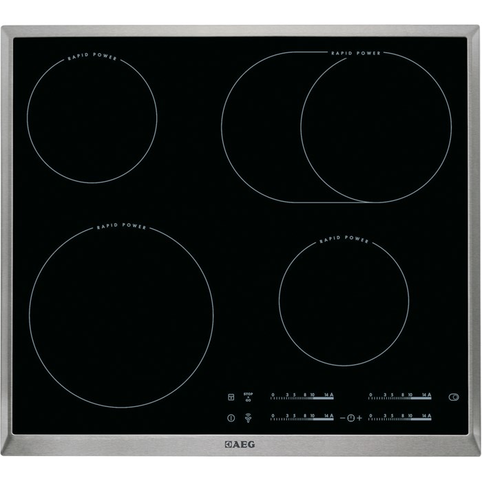 AEG HK654850XB Autarkes Kochfeld - Strahlenbeheizt - Slider-Bedienung - 60 cm - Edelstahlrahmen - 4 Kochzonen - Bräterzone - Rapid Power - Kindersicherung