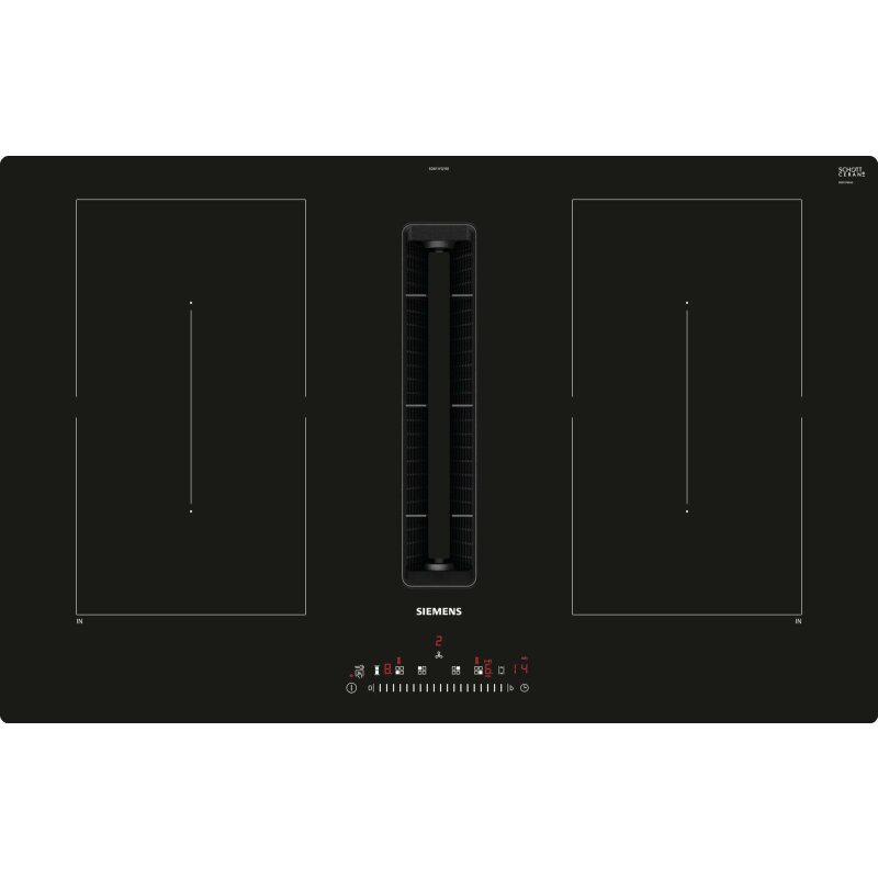Siemens ED811FQ15E Induktionskochfeld mit DunstabzugEinbaugerät, Energieeffizienzklasse B, flexible Kochzonen 4, Gebläsestufen 1, Breite 80,2 cm, rahmenlos, Touch, schwarz