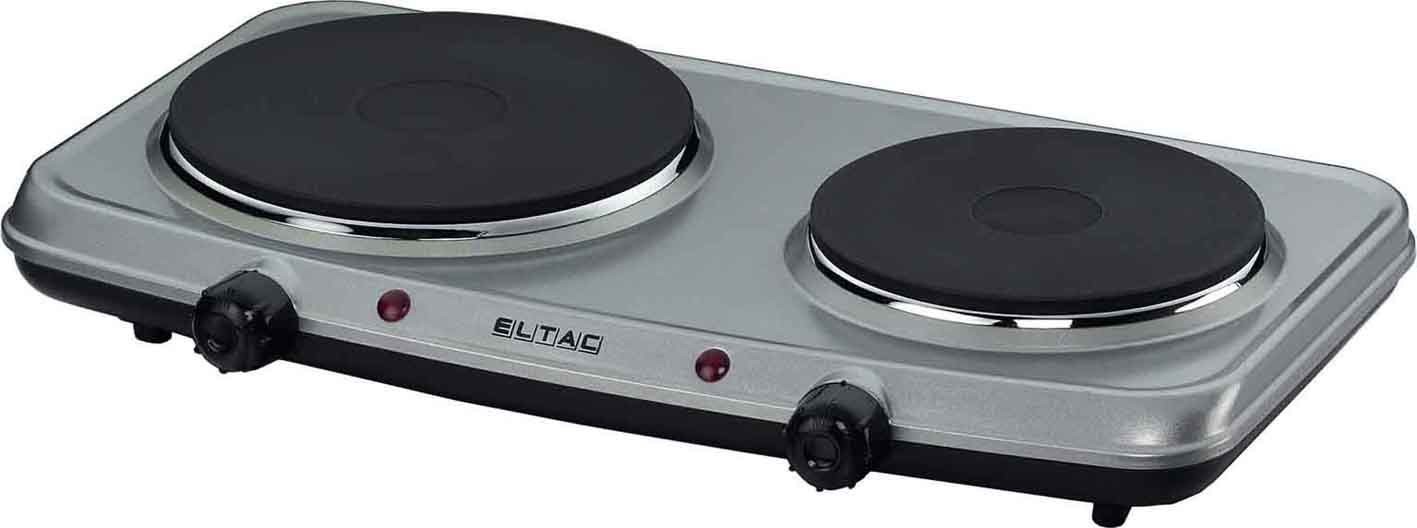 - Die Kochplatte ELTAC DK 28 verfügt über zwei Kochfelder, die das gleichzeitige Erhitzen von bis zu zwei Töpfen oder Pfannen ermöglichen.