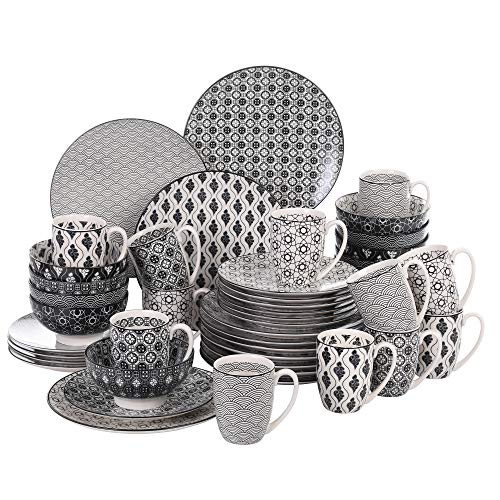 in KochzubehörvancassoHaruka Geschirrservice aus Porzellan, 48 TLG. Set Rund Kombiservice für 12 Personen, Beinhaltet Becher, Schalen, Dessertteller und Essteller