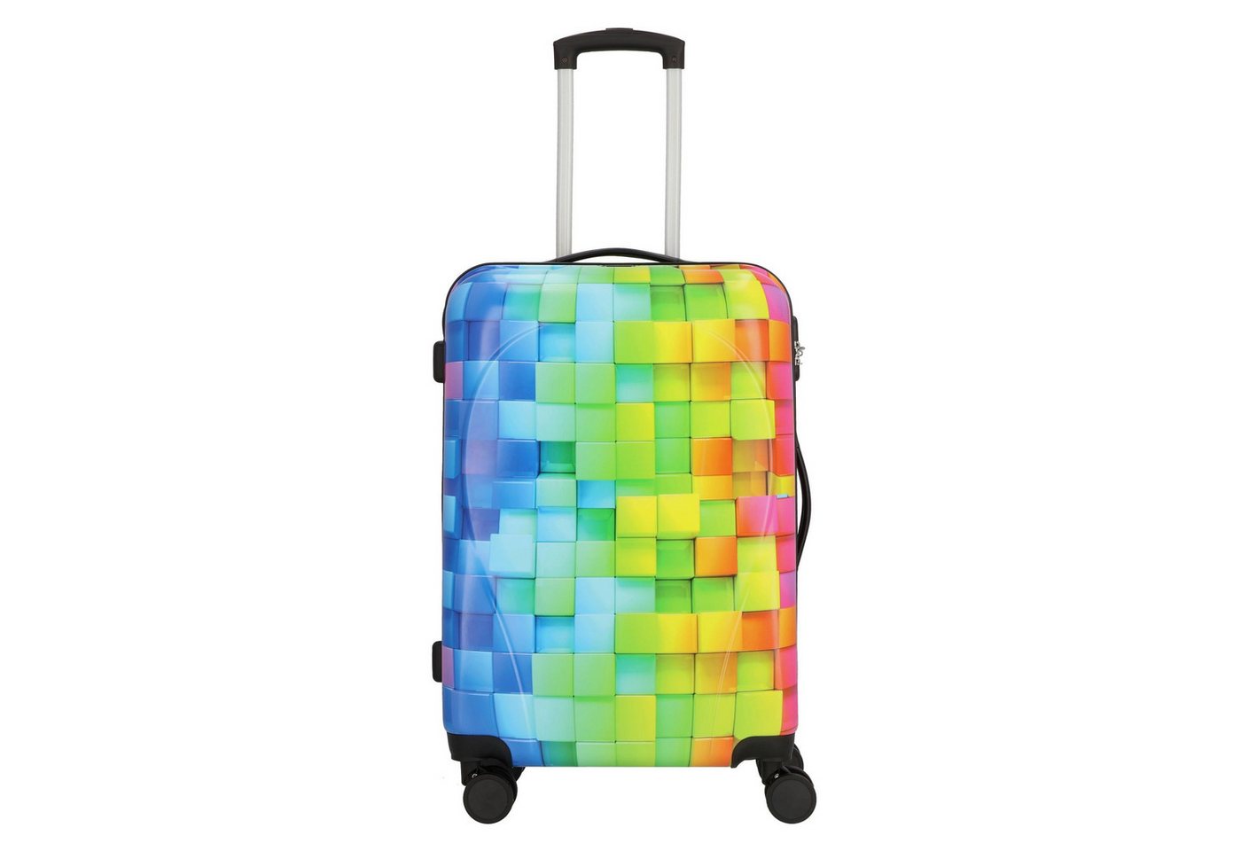 - Außen verfügt er über einen verriegelbaren Teleskopgriff, zwei Tragegriffe und 4 leichtgängige Rollen für bequemen Transport