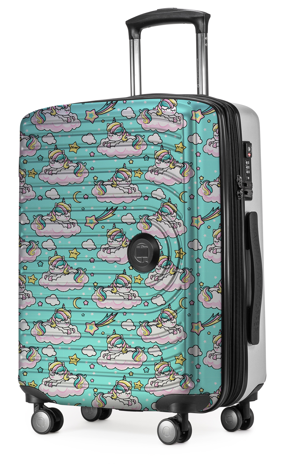 X-Mas Deal in KofferHauptstadtkoffer Mitte Handgepäck Boardgepäck Kabinentrolley 55 x 40 x20 cmTSA, XXL Erweiterung, 55 cm, 50 liter Einhorn Weiß