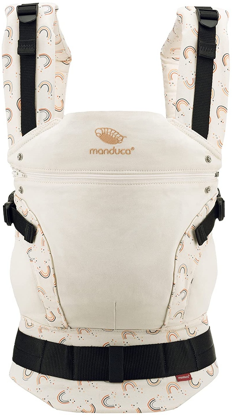 - Die Manduca First Limited Edition Rainbow Day ist bereits ab der Geburt geeignet und enthält einen Sitzverkleinerer für Neugeborene.