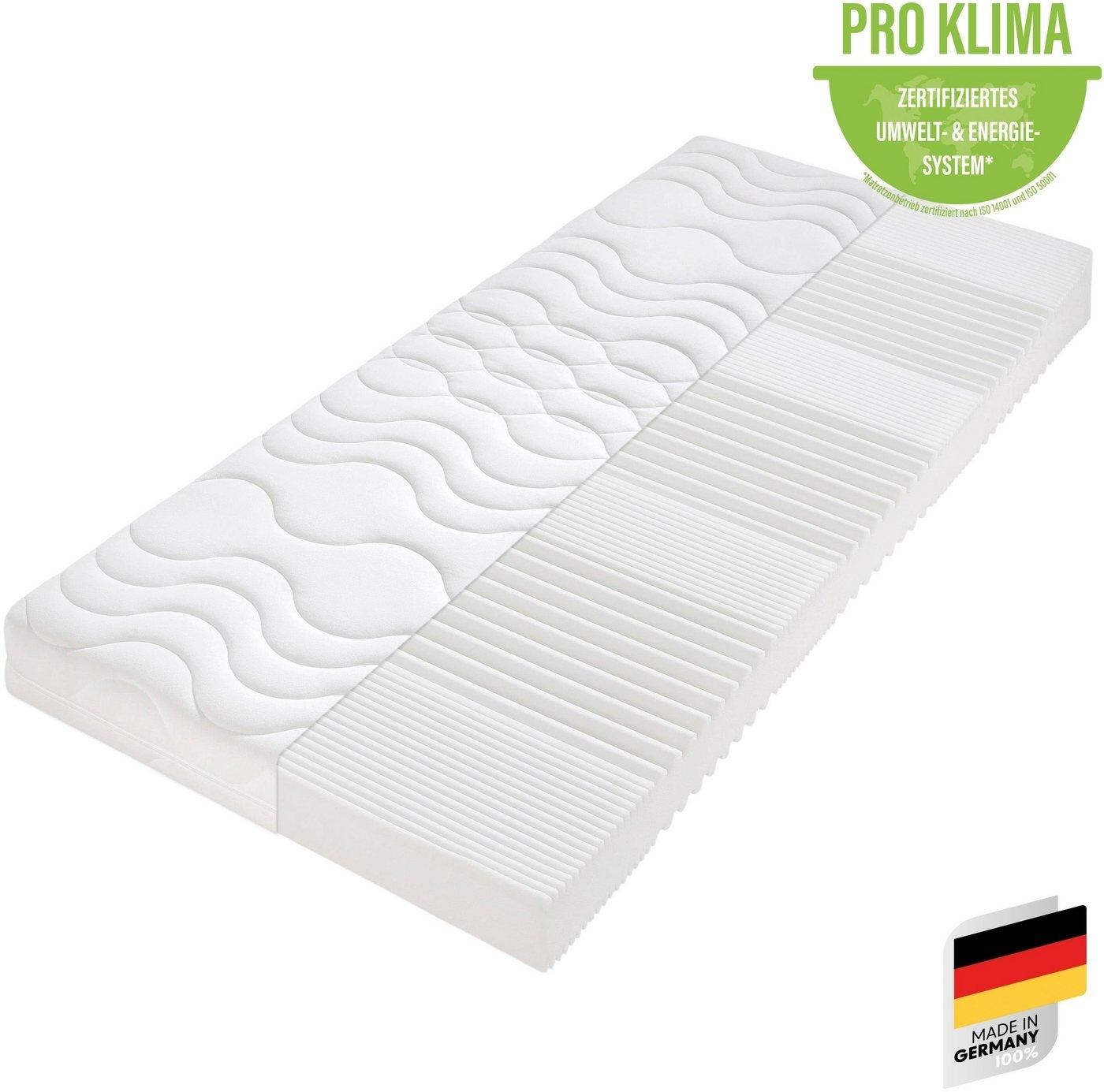 Medibett Standard Komfortschaummatratze by Be Co Die ca. 15 cm hohe Komfortschaummatratze mit 7 Liegezonen und Schulter- und Beckenkomfortzone. Äußerst punktelastisch, formstabil und atmungsaktiv. Mit weicher Schulterkomfortzone und guter Bandscheiben-Entlastung. Die spezielle Oberflächenprofilierung der Matratze und die offenporige Materialien sorgen sowohl in Seiten- als auch in Rückenlage für eine gute Druckentlastung und ein hervorragendes Schlafklima. Der feuchtigkeitsregulierende und hautfreundliche Frottee-Stretch-Bezug ist mit Klimafaser auf Steppvlies in 7-Zonen-Funktion versteppt. Beide Liegeseiten der Matratze wirken mit gleicher Stützkraft. Über Be Co: Be Co - ein innovatives Familienunternehmen mit über 60 Jahren Erfahrung in der Entwicklung, Produktion und dem Vertrieb von Federholzrahmen, Matratzen, Bettwaren und Betten. Be Co ist Ihr qualitätsbewusster Hersteller um das Thema Schlafkomfort. Was uns besonders wichtig ist: Alle Produkte werden ausschließlich in Deutschland produziert. Schlafkomfort in höchster Qualität - made in Germany! **Bezug:** 100% Polyester