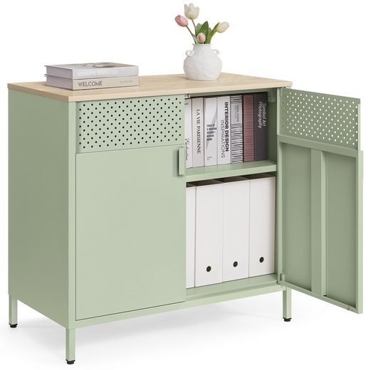 in KommodenSONGMICS 'LSCDE102C01' Metallschrank mit Doppeltürverstellbarer Einlegeboden, Stahl / Holzspanplatte lorbeergrün, 40 x 80 x 76 cm