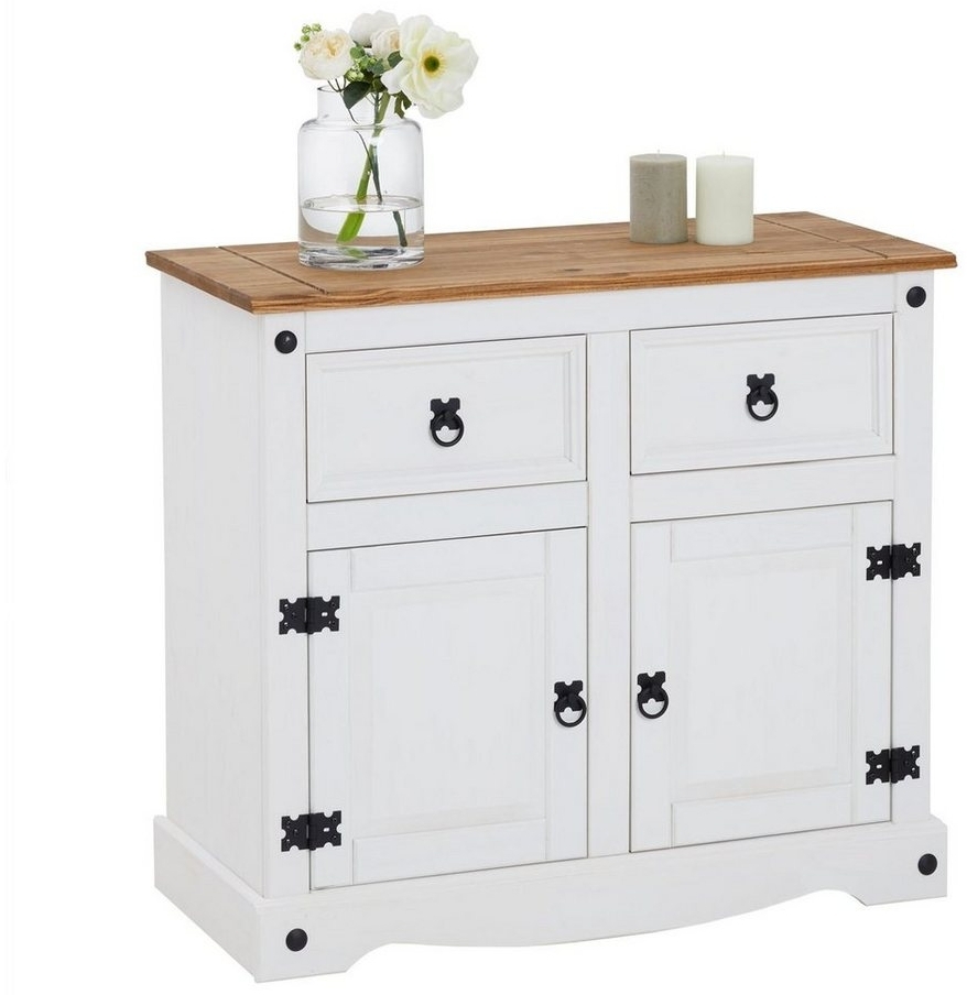 | Name | Kommode Campo Sideboard Buffetschrank Geschirrschrank Kiefer massiv mit 2 Schubladen und 2 Türen, braun/weiß |