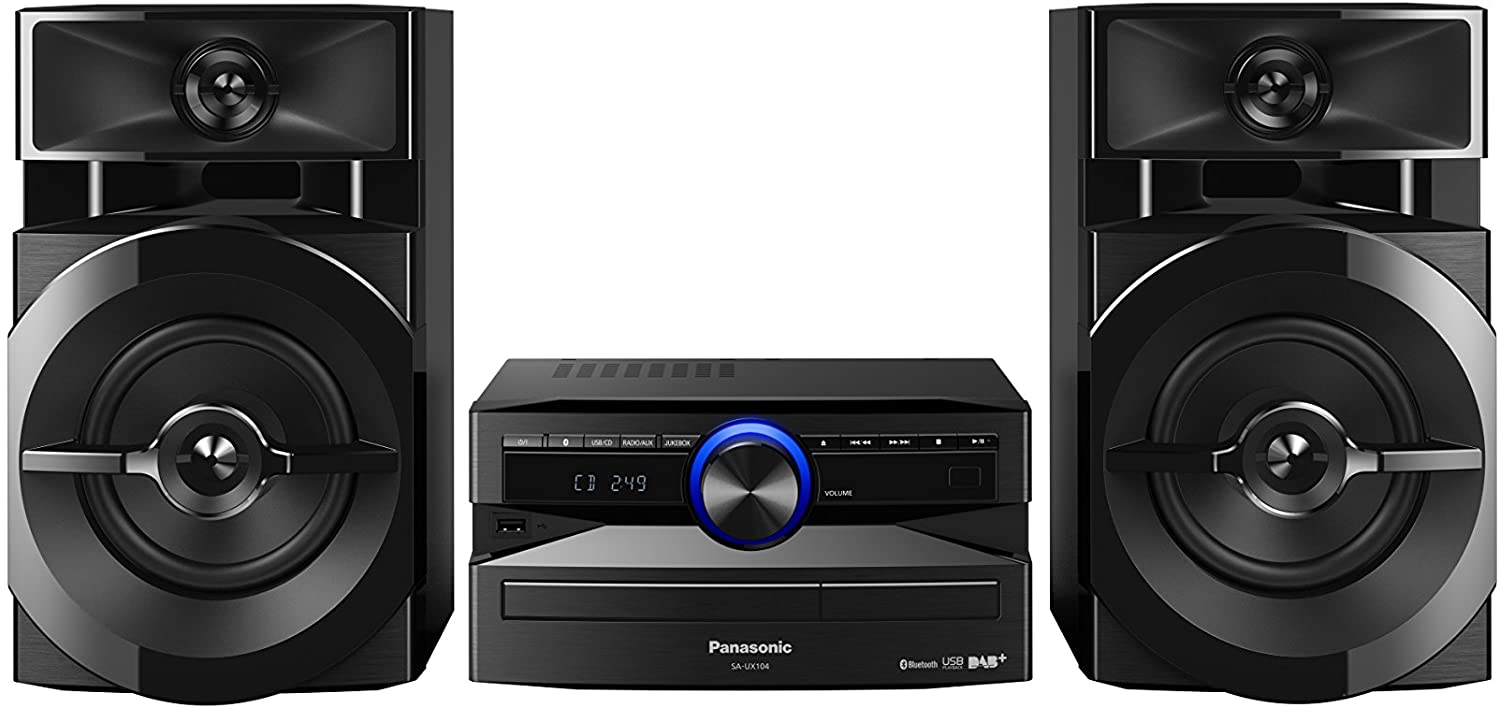 - Das Panasonic SC-UX104EG-K CD-Micro-Musiksystem bietet eine Ausgangsleistung von 300 Watt RMS für kraftvollen Sound und satten Bass.