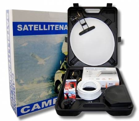 - Der Lieferumfang umfasst einen 40 x 35 cm großen Satellitenspiegel, einen HD Satellitenreceiver (DVB-S2), ein Single LNB und ein 10 Meter Koaxialkabel.