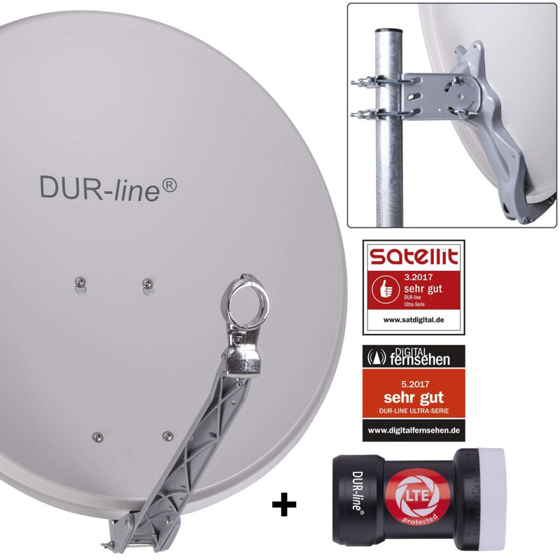 - Das Set beinhaltet einen DUR-line Single LNB, der mit einem integrierten LTE-Filter ausgestattet ist.