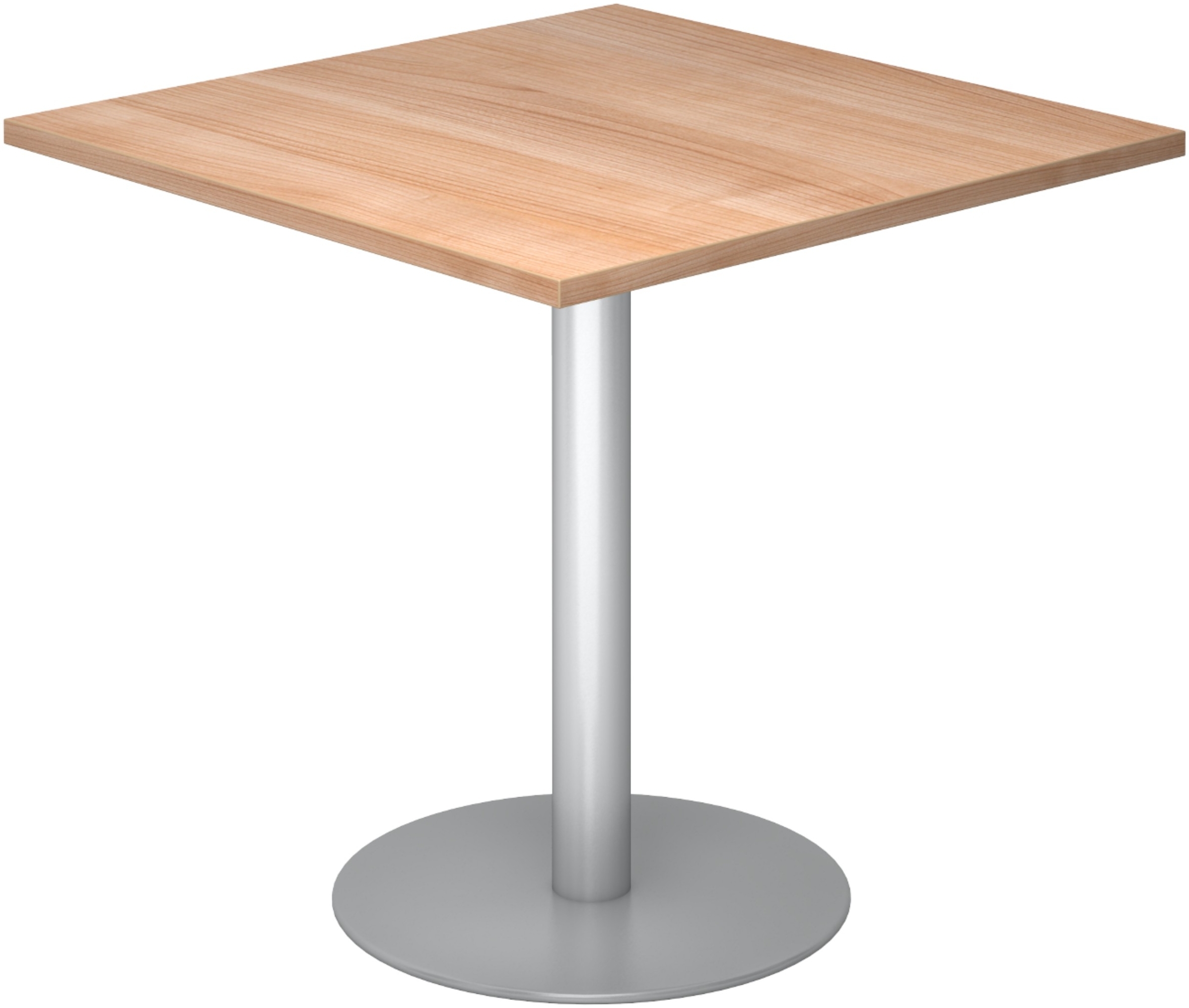in Konferenztischebümö Besprechungstisch Esstisch klein, Tisch eckig 80x80 cm - kleiner Esstisch Nussbaum, Rundtisch Esstisch 2 Personen mit Holz-Platte, Säule aus Metall in silber, Konferenztisch, Bistrotisch, STF88-N-S