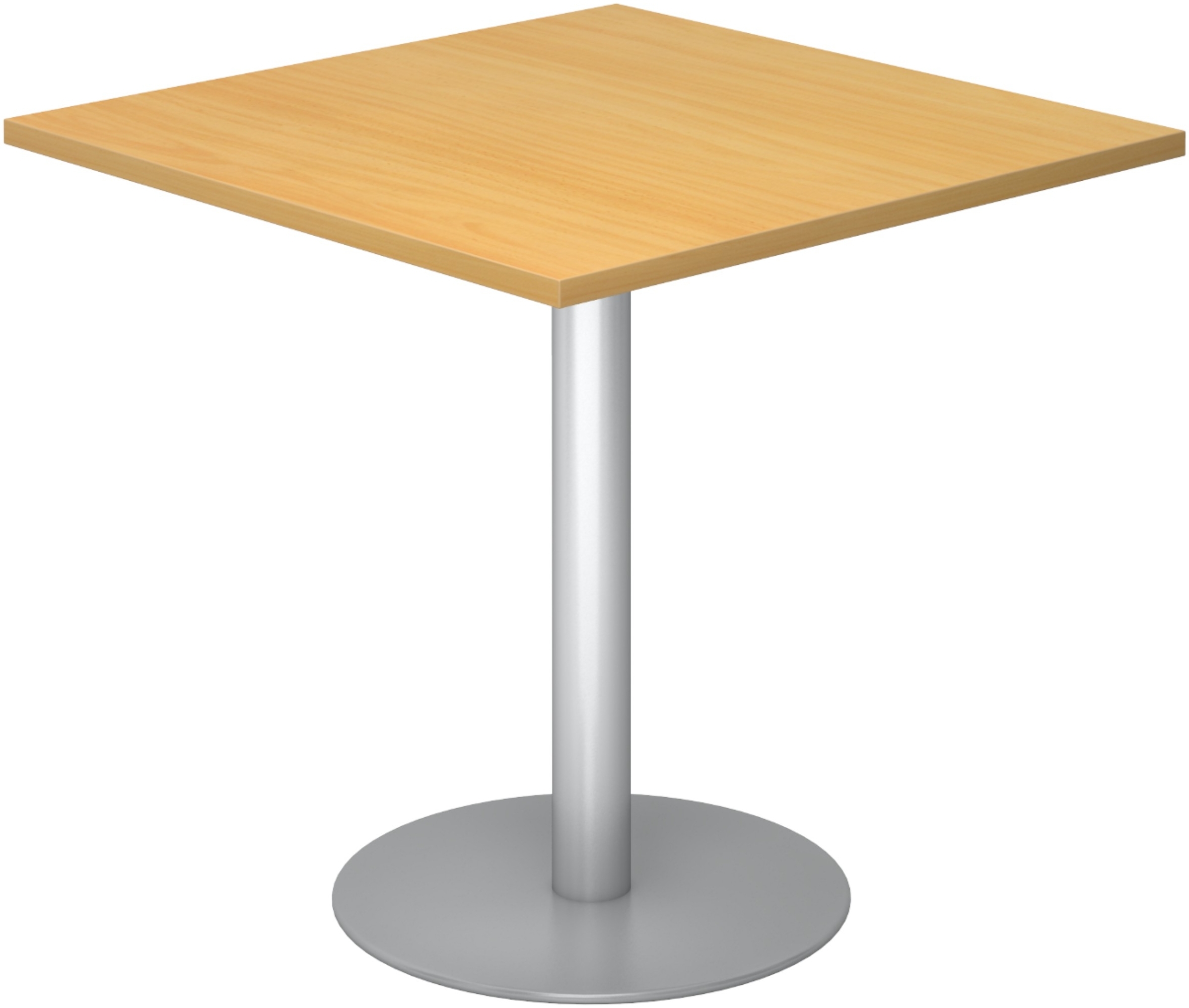in Konferenztischebümö Besprechungstisch Esstisch klein, Tisch eckig 80x80 cm - kleiner Esstisch Buche, Rundtisch Esstisch 2 Personen mit Holz-Platte, Säule aus Metall in silber, Konferenztisch, Bistrotisch, STF88-6-S