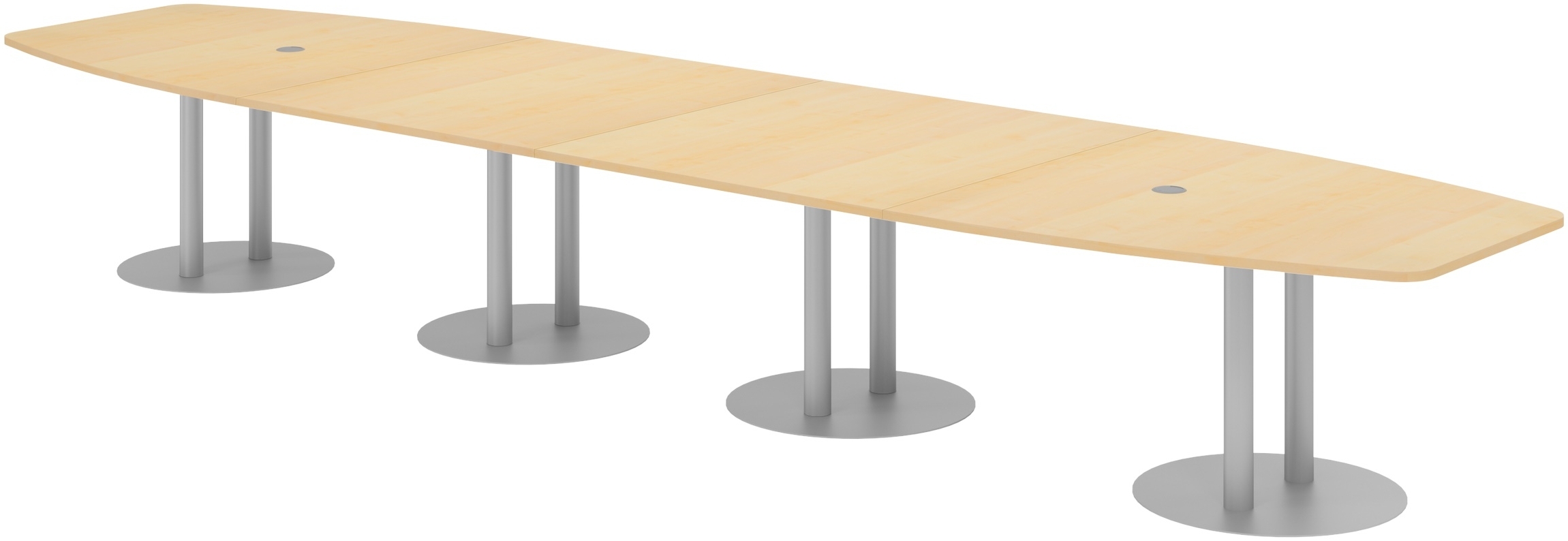 in Konferenztischebümö Konferenztisch oval 520x130 cm großer Besprechungstisch in Ahorn Besprechungstisch mit Säulen in silber, Meetingtisch für 18 Personen, XXL-Tisch für Besprechungsraum & Meeting, KT52S-3-S