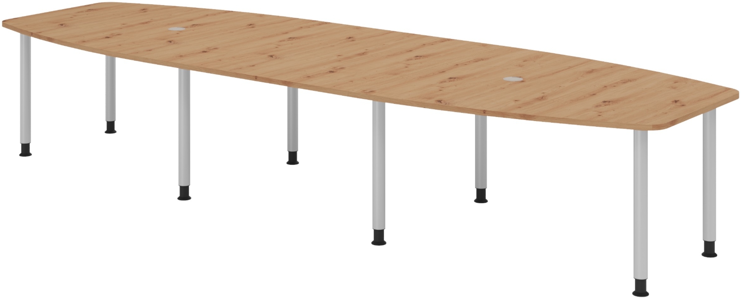 in Konferenztischebümö Konferenztisch oval 400x130 cm großer Besprechungstisch in Asteiche Besprechungstisch mit Gestell in Silber, Meetingtisch für 14 Personen, XXL-Tisch für Besprechungsraum & Meeting, KT40C-R-S