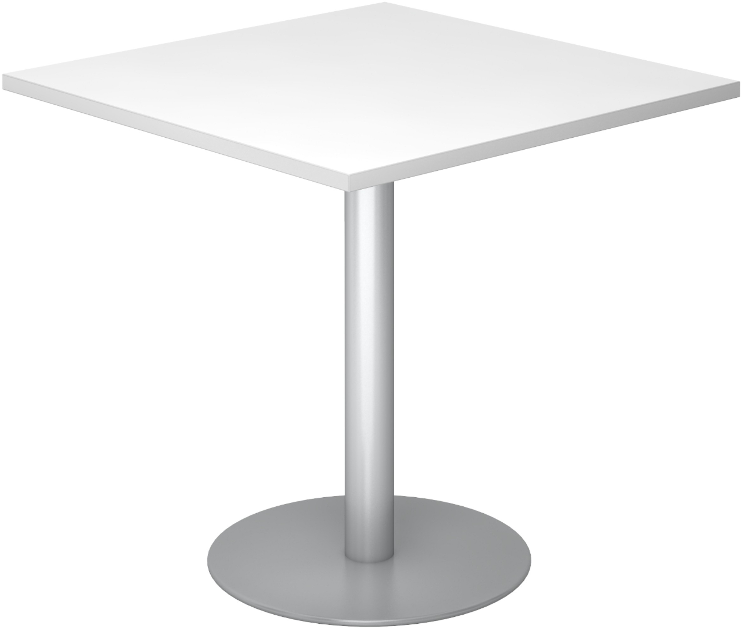 in Konferenztischebümö Besprechungstisch Esstisch klein, Tisch eckig 80x80 cm - kleiner Esstisch weiß, Rundtisch Esstisch 2 Personen mit Holz-Platte, Säule aus Metall in silber, Konferenztisch, Bistrotisch, STF88-W-S
