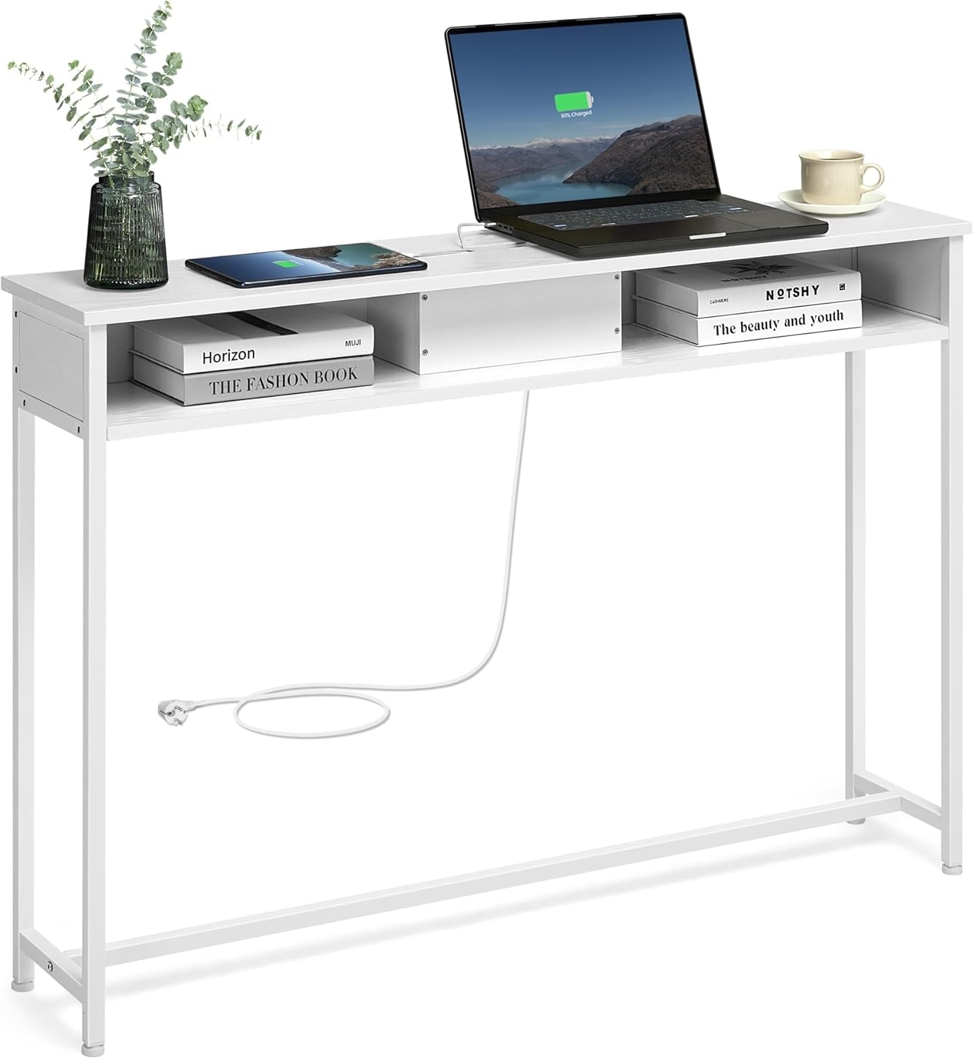 Songmics 'Vasagle' Konsolentisch mit Steckdosen mit 2 Fächernschmal, weiß, 25 x 120 x 81,1 cm