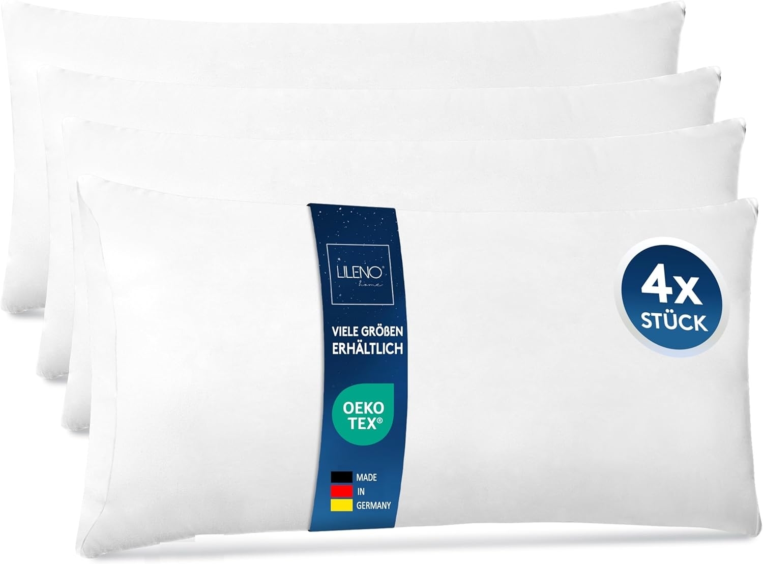 | Name | LILENO HOME 4er Set Kissenfüllung 40x80 cm - 40°C waschbares Innenkissen geeignet für Allergiker - Polyester Kisseninlet als Couchkissen, Sofa Kissen, Cocktailkissen und Kopfkissen |