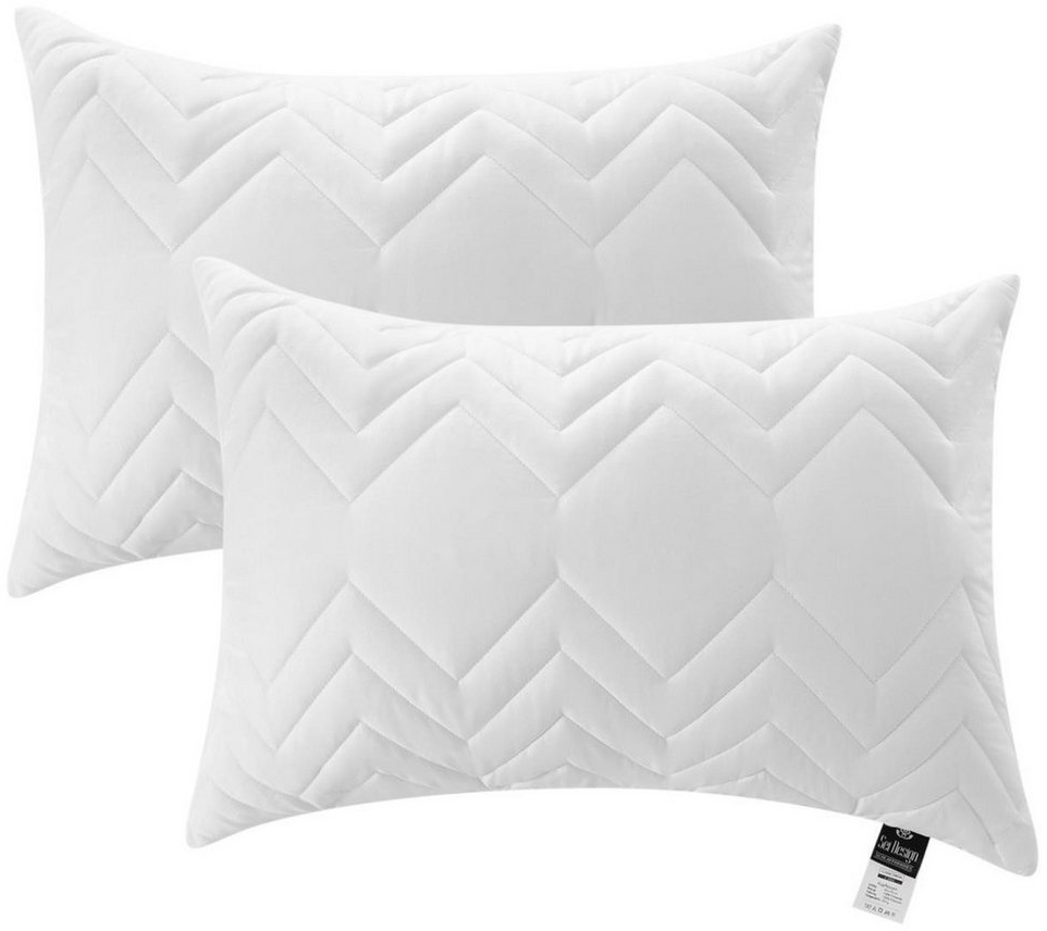SEI Design Microfaserkissen Kopfkissen Kissen Zierkissen Sofakissen Nackenstützkissen 50x70Füllung: 100% Mikrofaser, Seitenschläfer, Rückenschläfer, Bauchschläfer, 2-er SET, Schlafkissen gesteppt mit Reißverschluss Kochfest 95°