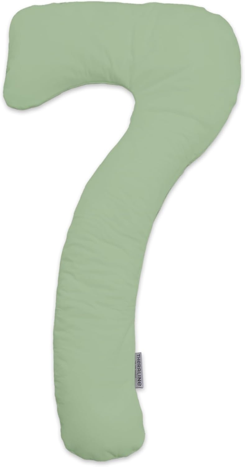 Die my7 Schlaf- & Stillkissen Bamboo Collection von Theraline bietet Ihnen wunderbaren Schlafkomfort und eine bequeme Unterstützung während der Schwangerschaft und beim Stillen. Mit einer innovativen Sieben-Form und einer Zwei-Zonen-Füllung aus Mikroperlen und Thera-Rhomb® sorgt das Kissen für eine ergonomische Schlafposition und entlastet Nacken, Schultern sowie den Babybauch. Der Bezug aus Bambus-Viskose und Bio-Baumwolle ist hygienisch und waschbar bis 60 °C. **Highlights** - Integriertes Kopfkissen für umfassende Unterstützung - Zwei-Zonen-Füllung für stabilen Halt und Komfort - Hygienisch waschbar bis 60 °C - Schadstofffrei und geruchslos - Ideal für Seitenschläfer und Schwangere **Produkteigenschaften** - Außenmaß: ca. 150 x 80 cm - Material: Inlett 100 % Baumwolle, Bezug: 57 % Viskose aus Bambusfasern, 38 % Baumwolle (Bio), 5 % Elasthan, Wattierung 100 % Polyester, Gesamtbezug 65 % Polyester, 20 % Viskose aus Bambusfasern, 13 % Baumwolle (Bio), 2 % Elasthan - Kissen waschbar bis 60 °C - Außenbezug waschbar bis 60 °C - Zertifiziert nach OEKO-TEX 100 **Lieferumfang** - 1x my7 Schlaf- & Stillkissen - Ausschluss: Dekoration und weiteres Zubehör