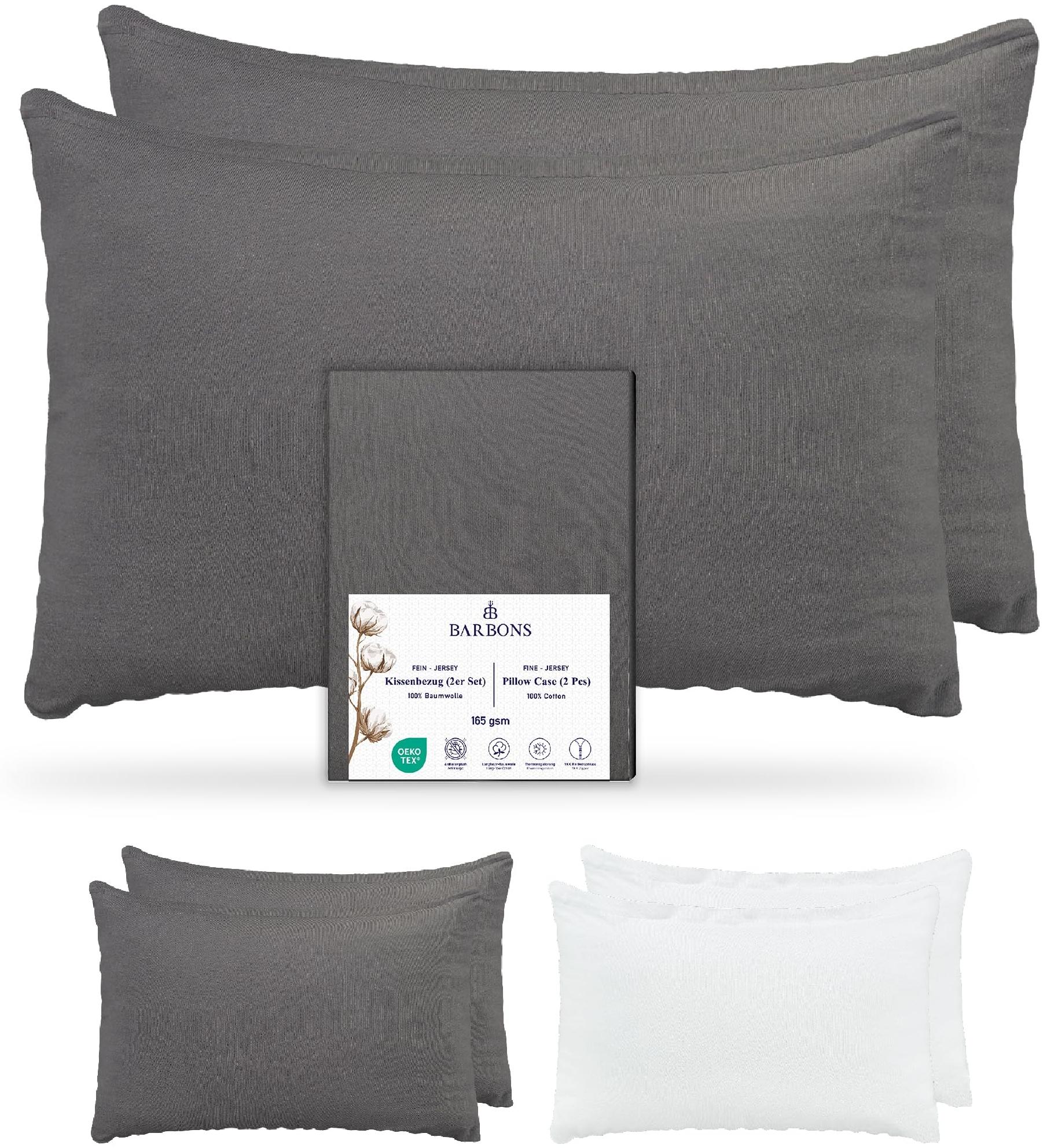 | Name | Barbons Kissenbezug 40x60 Anthrazit 2er Set – 165 g/m² Oeko-TEX Zertifiziert Kopfkissenbezug 100% Jersey Baumwolle weiche Kissenbezüge Kissenhülle mit Reißverschluss (40x60-Anthrazit) |