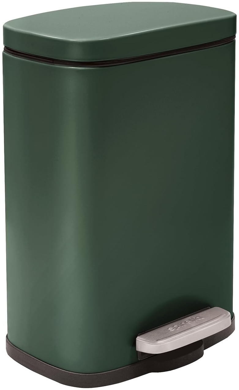 Der Treteimer Akira in Dunkelgrün matt ist ein eleganter Abfalleimer mit einem Fassungsvermögen von ca. 5 Litern, ideal für Badezimmer oder Küche. Der Eimer besteht aus rostfreiem Stahl und verfügt über einen Kunststoffeinsatz mit Tragegriff, der das Entleeren und Reinigen erleichtert. Das Fußpedal ermöglicht ein bequemes Öffnen, während die Absenkautomatik für ein leises Schließen sorgt. **Highlights** - Stilvoller Treteimer in Dunkelgrün matt - Fassungsvermögen von ca. 5 Litern - Kunststoffeinsatz mit Tragegriff für einfaches Entleeren und Reinigen - Fußpedal für bequemes Öffnen ohne Bücken - Absenkautomatik für leises Schließen **Produkteigenschaften** - Farbe: Dunkelgrün matt - Material: Rostfreier Stahl - Maße: 17,6 x 21,4 x 30 cm **Lieferumfang** - 1x Treteimer Akira - Dunkelgrün matt 5 Liter