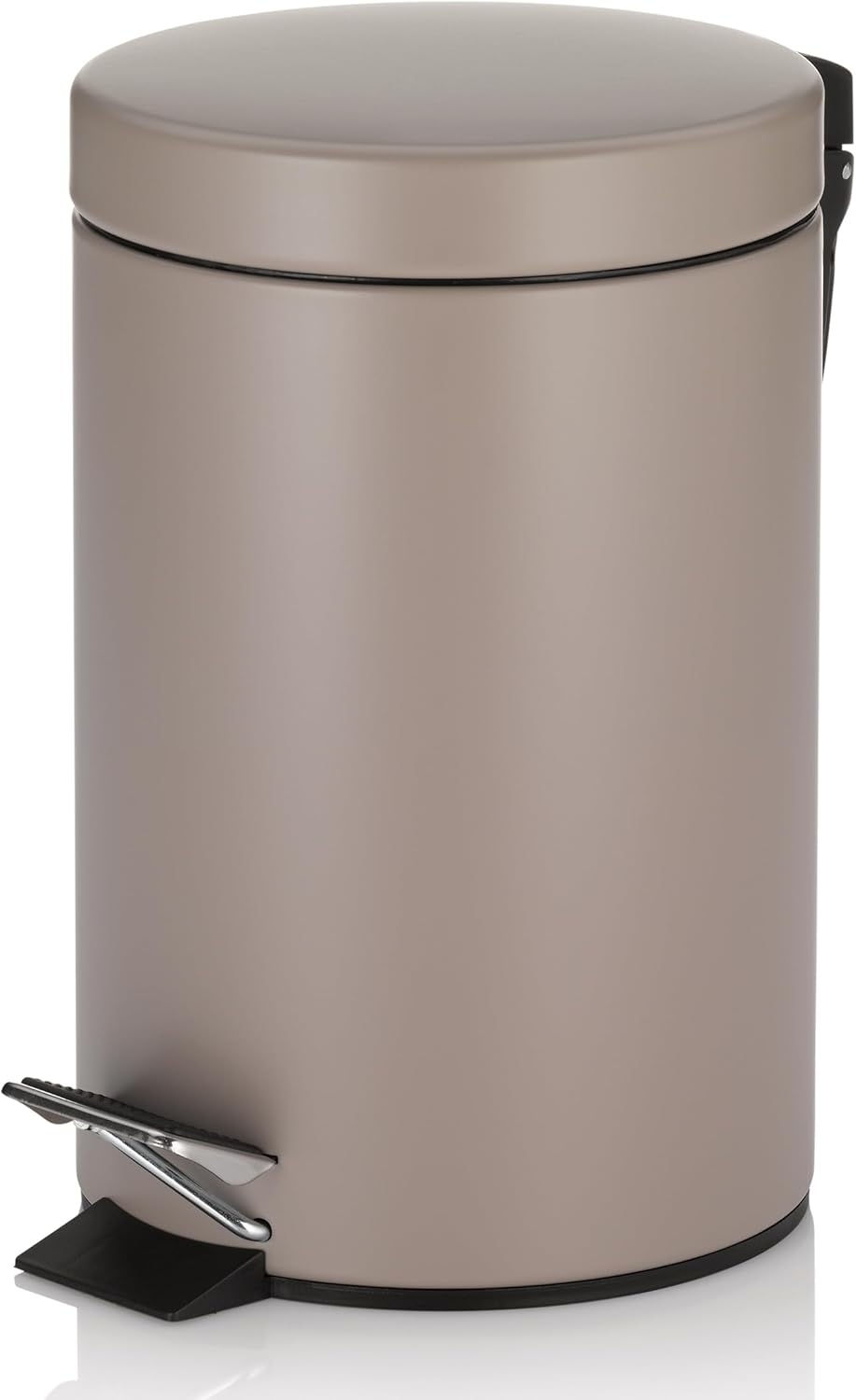 Der kela Kosmetikeimer Monaco ist ein eleganter und praktischer Treteimer aus hochwertigem Metall in der Farbe Zartpuder. Mit einem Volumen von 3 Litern und einem herausnehmbaren Inneneimer aus schwarzem Kunststoff, der mit einem Tragegriff ausgestattet ist, eignet er sich ideal für die Abfallentsorgung in Küche und Bad. Die gummierte Unterseite sorgt für einen sicheren Stand, während das rutschfreie Pedal eine komfortable Bedienung ermöglicht. **Highlights** - Herausnehmbarer Inneneimer mit Tragegriff für einfache Entsorgung - Gummierte Unterseite für festen Stand - Rutschfreies Pedal zum Öffnen und Schließen des Deckels - Kompakte Größe für Badezimmer, WC, Küche oder Büro - Hochwertiges Metall in der Farbe Zartpuder **Produkteigenschaften** - Volumen: 3 l - Maße (H x Ø): 26x17 cm - Material: Metall / Kunststoff - Farbe: Zartpuder - Leichte Reinigung mit feuchtem Tuch und Spülmittel **Lieferumfang** - 1x Badezimmer Mülleimer klein MONACO in Zartpuder (Art. Nr. 20526) - Füllmenge: 3 Liter - Maße: H 26 cm, ∅ 17 cm