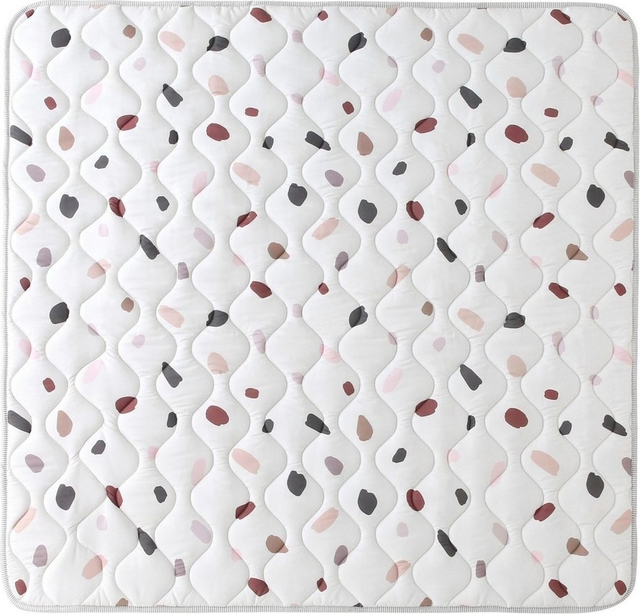 Die Krabbeldecke für Ihr Baby mit einem Durchmesser von 1,5 m bietet eine großzügige und weiche Fläche zum Krabbeln, Spielen und für Sportübungen. Hergestellt aus hautfreundlichem Polyestergewebe, ist die Matte 100 % sicher und geruchlos. Die rutschfeste Unterseite sorgt für Stabilität, während die pflegeleichte Oberfläche eine Maschinenwäsche bei 30 °C ermöglicht. Die nachhaltige Verpackung reduziert CO2-Emissionen und die Decke nimmt innerhalb von 72 Stunden nach dem Auspacken ihre natürliche Dicke wieder an. **Highlights** - Unisex-Design, das stilvoll Ihre Einrichtung verschönert - Großzügiger Durchmesser von 150 cm für viel Platz - 100 % sicher und geruchlos, entspricht REACH-Standards - Pflegeleicht und für 30 °C Maschinenwäsche geeignet - Nachhaltige Verpackung, die CO2-Emissionen reduziert **Produkteigenschaften** - Stärke: 1,5 cm - Material: Polyestergewebe - Rutschfeste Unterseite - Vakuumversiegelt geliefert, nimmt innerhalb von 72 Stunden die natürliche Dicke wieder an