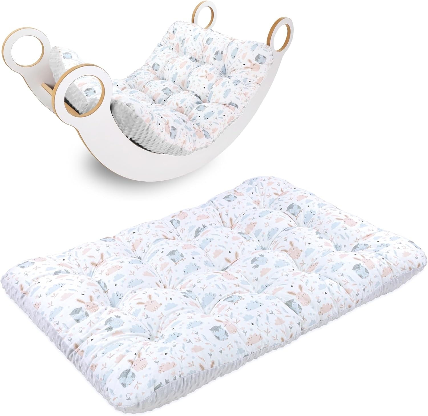 Gemütliches Bodenkissen für lange Spielstunden im Innenbereich. Mit einer Größe von 70 x 110 cm bietet es hohen Sitzkomfort und eine große Spielfläche zum Krabbeln und Spielen. Das Kissen ist dick gepolstert, isoliert gut vor dem kalten Boden und ist aus hochwertigen Materialien handmade gefertigt. Es ist hygienisch, pflegeleicht und eignet sich hervorragend als Geschenk für Babys und ältere Kinder. **Highlights** - Bietet hohen Sitzkomfort - Dick gepolstert und isoliert gut vor dem kalten Boden - Große Spielfläche zum Krabbeln und Spielen - Handmade mit hochwertigen Materialien - Tolles Geschenk für Babys und ältere Kinder **Produkteigenschaften** - Abmessungen: 70 x 110 cm - Material: Bezug aus weicher Baumwolle, Minky (Polyester) und hochbauschige Füllung aus Polyester - Maschinenwaschbar bis 30 °C - Geeignet für Jungen und Mädchen - Beidseitig verwendbar - Hergestellt in der EU