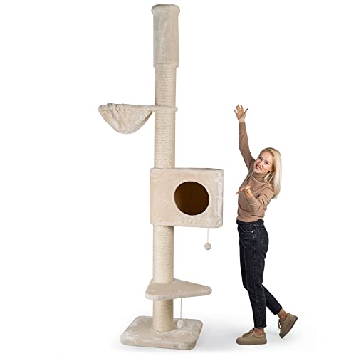 HAPPYPET Kratzbaum Grosse Katzen Stabil XXL Deckenhoch 250 bis 275 cm – 18 cm Dicke Stämme, Große Liegemulden bis 20 kg, Höhle, geprüftes Holz, Katzenkratzbaum für Maine Coon