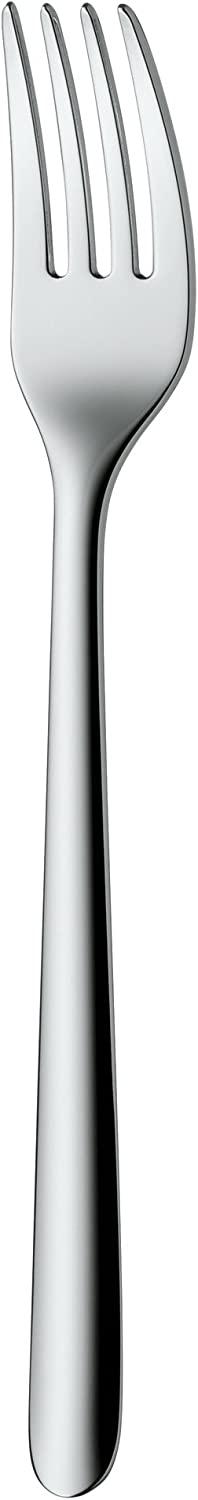 Die Kuchengabel Flame von WMF vereint elegantes Design mit hoher Funktionalität. Mit einer Länge von 16 cm liegt sie perfekt in der Hand und überzeugt durch ihre Ergonomie. Das patentierte Cromargan protect® Verfahren sorgt für extreme Kratzresistenz und macht die Gabel spülmaschinenfest. Ideal für Kuchen, Torten und Gebäck, fügt sich dieses Besteckstück harmonisch in jedes Ambiente ein. **Highlights** - Ergonomisches Design für optimalen Halt - Extrem kratzresistent durch Cromargan protect® - Spülmaschinengeeignet für einfache Reinigung - Hochwertiges Material: Cromargan protect Edelstahl 18/10 - Filigrane Form, die auf jedem Tisch elegant wirkt **Produkteigenschaften** - Länge: 16 cm - Material: Cromargan protect Edelstahl 18/10, poliert (glänzend) - Beständig gegen Speisesäuren und geschmacksneutral - Rostfrei und kratzbeständig - Ideal zum Portionieren von Kuchen, Torten oder Gebäck **Lieferumfang** - 1x WMF Kuchengabel Flame - Ausgeschlossen: Weitere Besteckteile