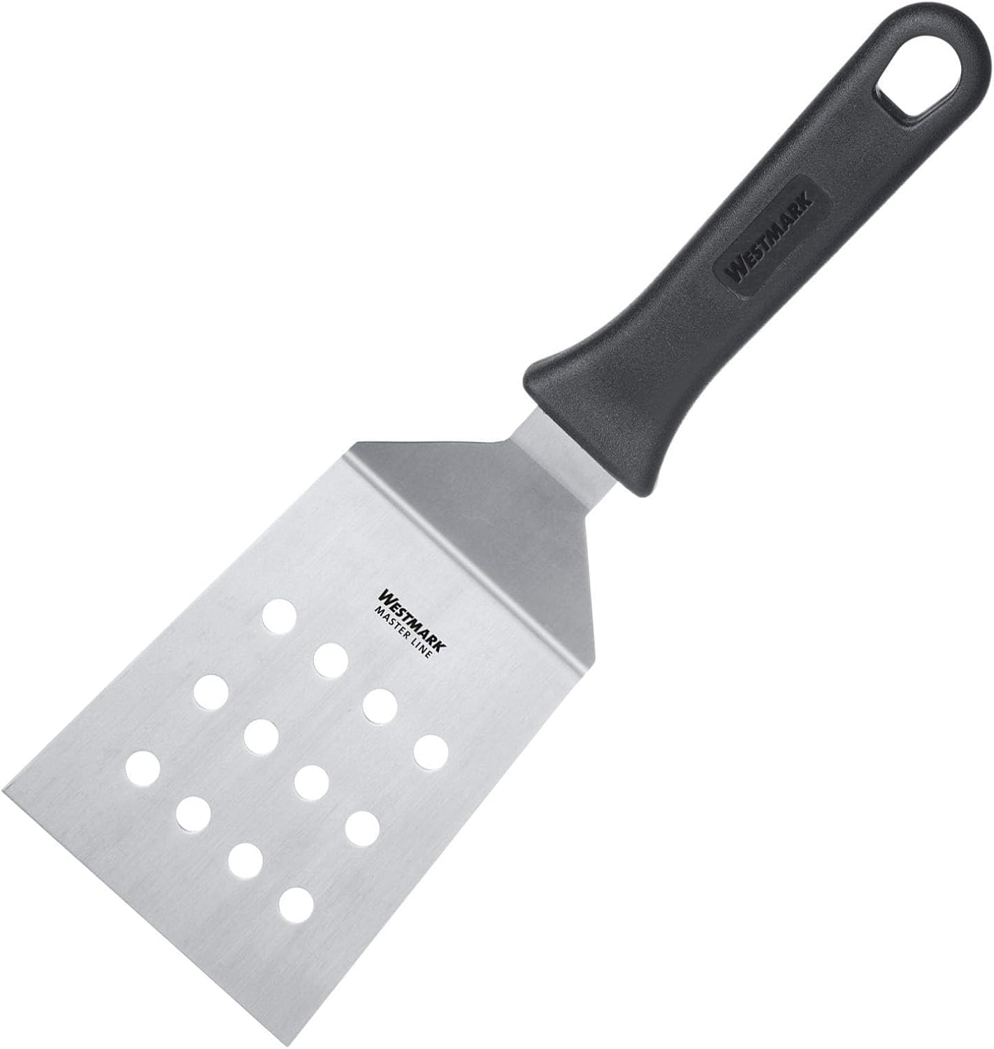 Der Westmark Wender "Master Line" ist ein Hochleistungswerkzeug für die Profiküche, gefertigt aus rostfreiem Edelstahl. Mit einer gewinkelten, starren und gelochten Klinge von 11,5 x 9 cm eignet er sich ideal zum Heben und Wenden von Brat- und Grillgut. Die Lochung ermöglicht das Abtropfen von überschüssigem Fett, während die Winkelung das Handling in tiefen Pfannen erleichtert. Dank seiner Stabilität ist er sowohl für den gewerblichen Einsatz als auch für Grillprofis zuhause geeignet. **Highlights** - Hochleistungswerkzeug für die Profiküche - Rostfreier Edelstahl - Gewinkelte, starre und gelochte Klinge - Abtropfen von überschüssigem Fett - Minimierte Verbrennungsgefahr **Produkteigenschaften** - Abmessungen: 11,5 x 9 cm - Material: Rostfreier Edelstahl - Geeignet für Brat- und Grillgut - Ergonomischer, rutschfester Griff - Spülmaschinengeeignet **Lieferumfang** - 1x Westmark Wender, Master Line - 5 Jahre Garantie - Klingenmaß: 9 x 11,5 cm - Länge: 29 cm - Gewicht: 139 Gramm - Material: Rostfreier Edelstahl/Kunststoff (PP) - Farbe: Schwarz/Silber - Hersteller- und Produktnummer: 13452270
