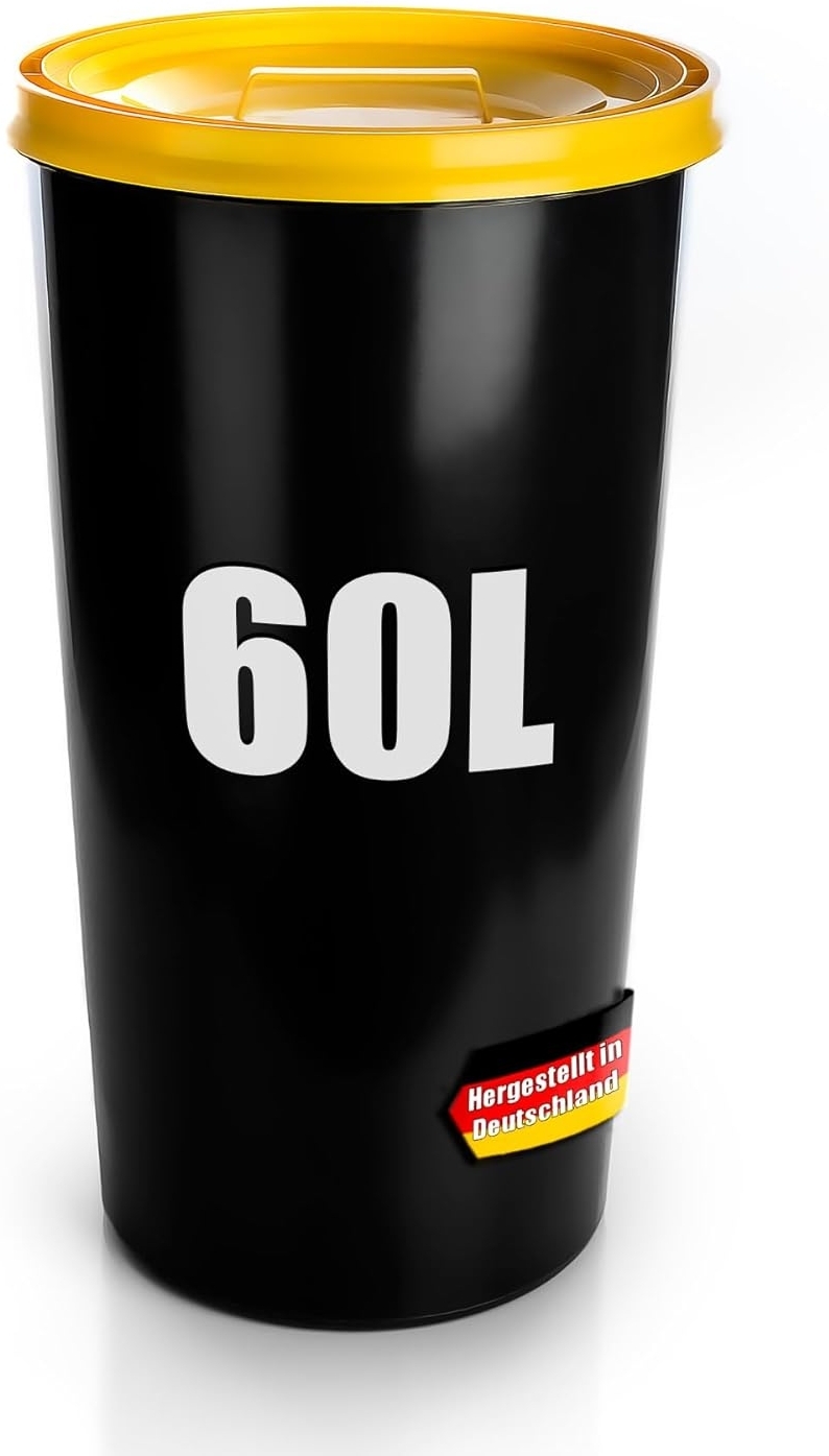 🔥 Deal in Küche: MülleimerBigDean wetterfeste Universaltonne 60L mit luftdicht verschließbarem Deckel in Gelb – auch als Mülleimer – Futtertonne oder Mülltonne geeignet – Innen + Außen geeignet – Made in Germany