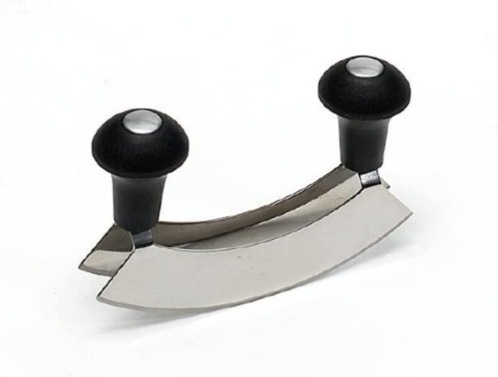 Das Axentia Wiegemesser 200509 ist ein klassisches Küchenutensil mit zwei Edelstahlklingen, das sich ideal zum Zerkleinern von Kräutern, Knoblauch und Zwiebeln eignet. Die Kunststoffgriffe sorgen für eine einfache Handhabung und ermöglichen ein präzises Wiegen über das Schnittgut. Mit kompakten Maßen von ca. 17 x 14 x 4 cm und einem Gewicht von ca. 199 g ist es perfekt für den täglichen Einsatz in der Küche. **Highlights** - Zwei Edelstahlklingen für feines Zerkleinern - Einfache Handhabung mit Kunststoffgriffen - Ideal zum Wiegen über das Schnittgut - Vielseitig einsetzbar in der Küche - Klassisches Design **Produkteigenschaften** - Maße: ca. 17 x 14 x 4 cm - Gewicht: ca. 199 g - Klingen aus Edelstahl - Griffe aus Kunststoff - Farbe: silberfarben (Klingen), schwarz (Griffe) **Lieferumfang** - 1x Wiegemesser