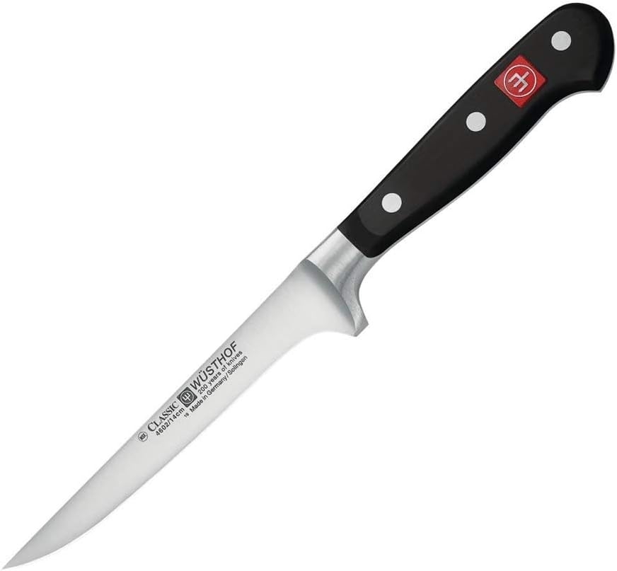 - Das Wüsthof 14 cm Classic Ausbeinmesser hat eine Klingenlänge von 14 cm, die ideal für das Ausbeinen von Fleisch ist.