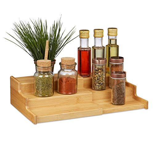 - Das Relaxdays Gewürzregal aus Bambus bietet auf 3 variablen Etagen Stauraum für Gewürzgläser, Salz- oder Pfefferstreuer, Kräuter und vieles mehr