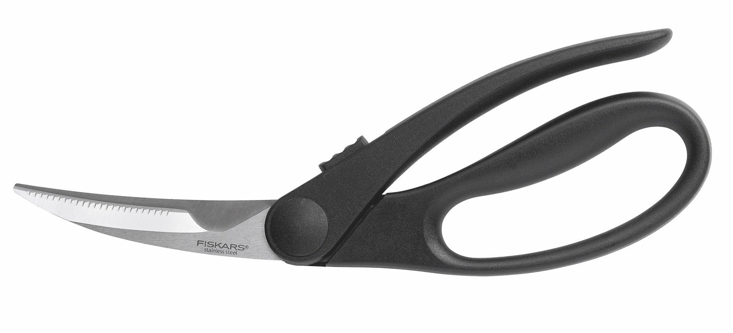 Fiskars Geflügelschere mit gebogenen ProfilklingenEdelstahl, Länge: 23 cm, Für Rechts- und Linkshänder, Schwarz-Silber, Essential, 1023819