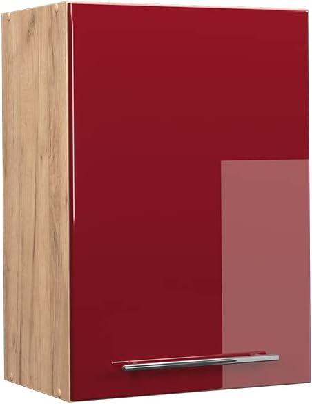 Erleben Sie den Vicco Hängeschrank Bordeaux Hochglanz aus der Serie „Fame-Line“. Mit einer Breite von 50 cm, einer Höhe von 72 cm und einer Tiefe von 34,1 cm bietet dieser Küchenschrank nicht nur modernes Design, sondern auch praktische Funktionen wie Softclose-Scharniere und langlebige Metallauszüge. Die pflegeleichte Spanplatte mit Melaminharzbeschichtung sorgt für eine einfache Reinigung und Langlebigkeit. **Highlights** - Hochwertige Materialien und Verarbeitung: Langlebigkeit und einfache Pflege - Softclose-Scharniere: Bequemes Handling der Türen - Metallauszüge in den Schubladen: Langlebigkeit garantiert - Standardisierte Maße: Passend für gängige Küchengeräte - Erweiterbarkeit mit anderen Modulen der Serie Fame-Line: Flexibilität für individuelle Küchengestaltung **Produkteigenschaften** - Farbe: Bordeaux Hochglanz - Maße (BxHxT): 50 x 72 x 34,1 cm - Innenmaße (BxHxT): 468 x 688 x 305 mm - Material: Spanplatte, 16 mm - Zusätzliches Material: MDF - Oberfläche: Melaminharzbeschichtung - Gewicht brutto: 19,6 kg - Artikelgewicht inkl. Verpackung: 16,7 kg - Artikelgewicht: 14,72 kg **Lieferumfang** - Küchenhängeschrank als Bausatz - Bebilderte Montageanleitung - Montagematerial - Hinweis: Dekoration nicht im Lieferumfang enthalten