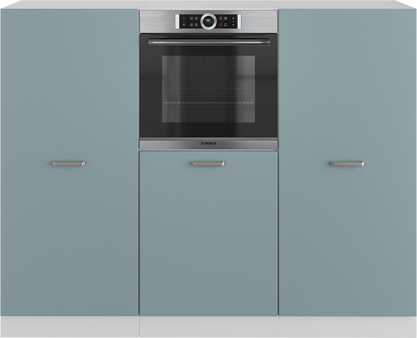 Der R-Line - Küchenblock (ohne Arbeitsplatte) bietet die perfekte Lösung für alle, die ihre Küche optimieren möchten. Die Mini-Küchenzeile ist ein wahrer Alleskönner und kann ganz nach den individuellen Wünschen konfiguriert werden. Egal, ob Sie viel Stauraum benötigen oder eine spezielle Anordnung von Schränken wünschen - mit dieser Einbauküche ist alles möglich. Zusätzliche Module können jederzeit hinzugefügt werden, um die ideale Konfiguration zu schaffen. Dank der höhenverstellbaren Füße kann die Mini-Küche perfekt an Ihre Bedürfnisse angepasst werden. Nicht nur das Design, sondern auch die Funktionalität wird Sie begeistern. Mit dem R-Line - Küchenblock schaffen Sie eine Komplettlösung für Ihre Küche, die Ihnen bestimmt lange Freude bereiten wird. Gönnen Sie sich diese innovative Küche und lassen Sie sich von ihrer Vielseitigkeit überzeugen! **Technische Details:** **Farbe:** Korpus: Weiß Front: Blaugrau **Maße:** 180 x 143 x 57 cm (BxHxT) **Backofenumbauschrank Abmessungen:** 60 x 143 x 57.2 cm (BxHxT) **Innenmaße:** 568 x 1327 x 550 mm **Innenmaße der oberen offenen Fächer:** 568 x 287 x 550 mm 568 x 295 x 550 mm **Innenmaße des unteren geschlossenen Fachs:** 568 x 338 x 550 mm **Material:** Spanplatte, 16 mm **Oberfläche:** Melaminharzbeschichtung **Artikelgewicht:** 166.79 kg **Artikelgewicht inkl. Verpackung:** 175.7 kg **LIEFERUMFANG:** Küchenblock ohne Arbeitsplatte, Montagematerial, Montageanleitung (Sofern nicht anders angegeben, gehören Elektrogeräte und Dekorationen nicht zum Lieferumfang)