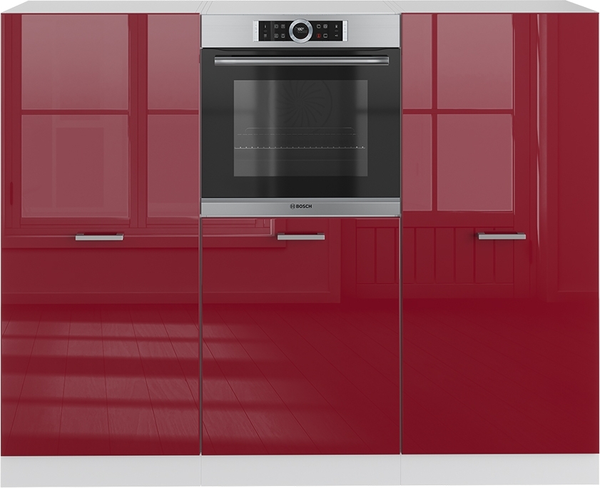 Der R-Line Küchenblock (ohne Arbeitsplatte) bietet die perfekte Lösung für alle, die ihre Küche optimieren möchten. Die Mini-Küchenzeile ist ein wahrer Alleskönner und kann ganz nach den individuellen Wünschen konfiguriert werden. Egal, ob Sie viel Stauraum benötigen oder eine spezielle Anordnung von Schränken wünschen - mit dieser Einbauküche ist alles möglich. Zusätzliche Module können jederzeit hinzugefügt werden, um die ideale Konfiguration zu schaffen. Dank der höhenverstellbaren Füße kann die Mini-Küche perfekt an Ihre Bedürfnisse angepasst werden. Nicht nur das Design, sondern auch die Funktionalität dieses Küchenblocks wird Sie begeistern. Mit dem R-Line Küchenblock schaffen Sie eine Komplettlösung für Ihre Küche, die Ihnen bestimmt lange Freude bereiten wird. Gönnen Sie sich diese innovative Küche und lassen Sie sich von ihrer Vielseitigkeit überzeugen! **Technische Details:** **Farben:** Rot Hochglanz/Weiß, Weiß **Abmessungen:** 180 x 143 x 57 cm (BxHxT) **Backofenumbauschrank Abmessungen:** 60 x 143 x 57.2 cm (BxHxT) **Innenmaße:** 568 x 1327 x 550 mm **Innenmaße der oberen offenen Fächer:** 568 x 287 x 550 mm 568 x 295 x 550 mm **Innenmaße des unteren geschlossenen Fachs:** 568 x 338 x 550 mm **Material:** Spanplatte, 16 mm **Oberfläche:** Melaminharzbeschichtung **Artikelgewicht:** 128.59 kg **Artikelgewicht inkl. Verpackung:** 137.5 kg **LIEFERUMFANG:** Küchenblock ohne Arbeitsplatte, Montagematerial, Montageanleitung (Sofern nicht anders angegeben, gehören Elektrogeräte und Dekorationen nicht zum Lieferumfang)