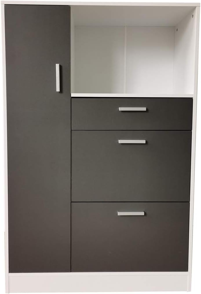 Der HTI-Line Küchenbuffet Küchenschrank Kombi L Blanca ist ein vielseitiges Stauraumwunder für Ihre Küche und darüber hinaus. Mit 4 Regalfächern und 3 Schubladen bietet er ausreichend Platz für Geschirr, Gläser und Töpfe. Das offene Regalfach ist ideal für die Mikrowelle. Ob im Büro, Hauswirtschaftsraum, Vorratsraum oder in der Garage – dieser Schrank sorgt überall für Ordnung und zusätzlichen Stauraum. **Highlights** - 4 Regalfächer für optimalen Stauraum - 3 Schubladen für eine übersichtliche Aufbewahrung - Offenes Regalfach für die Mikrowelle - Vielseitig einsetzbar in verschiedenen Räumen - Robuste Bauweise für langanhaltende Nutzung **Produkteigenschaften** - Maße Küchenschrank: 84,5 x 133 x 40 cm - Maße Schublade klein: 54 x 14,2 x 31,5 cm - Maße Schublade groß: 54 x 32,7 x 31,5 cm - Maße Mikrowellenfach: 55 x 38 x 31,5 cm