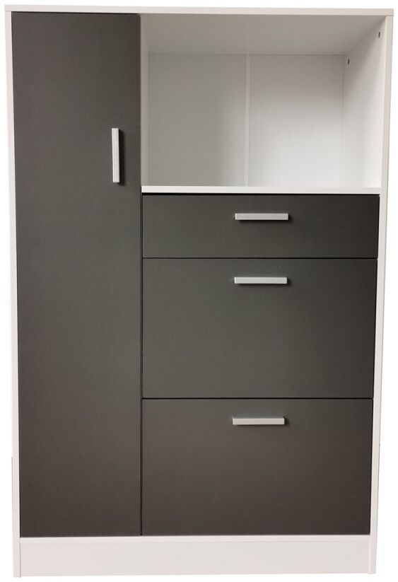 - Das offene Regalfach ist ideal für die Unterbringung einer Mikrowelle geeignet.