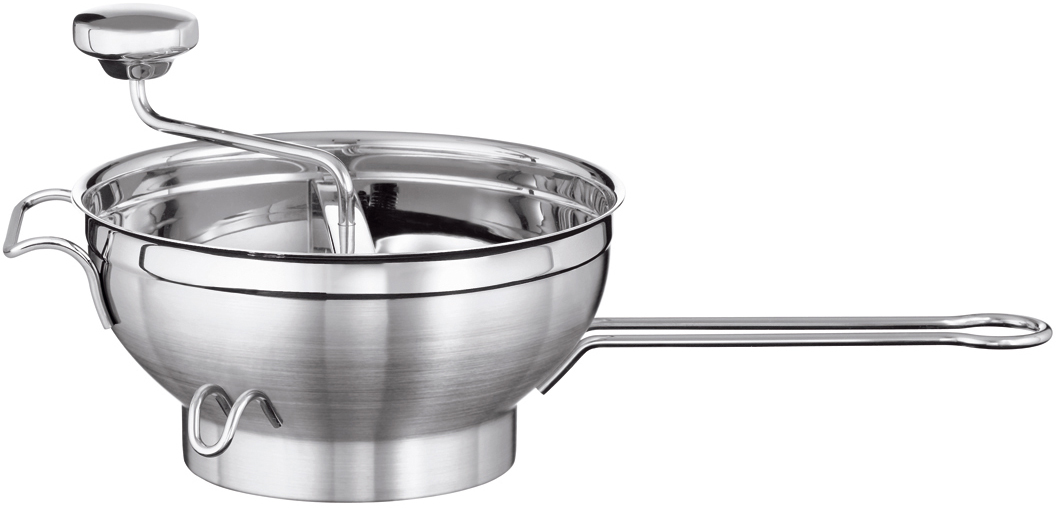 - Die Profiqualität und die durchdachte Konstruktion mit Gegengriff garantieren eine optimale Handhabung beim Passieren und Pürieren.
