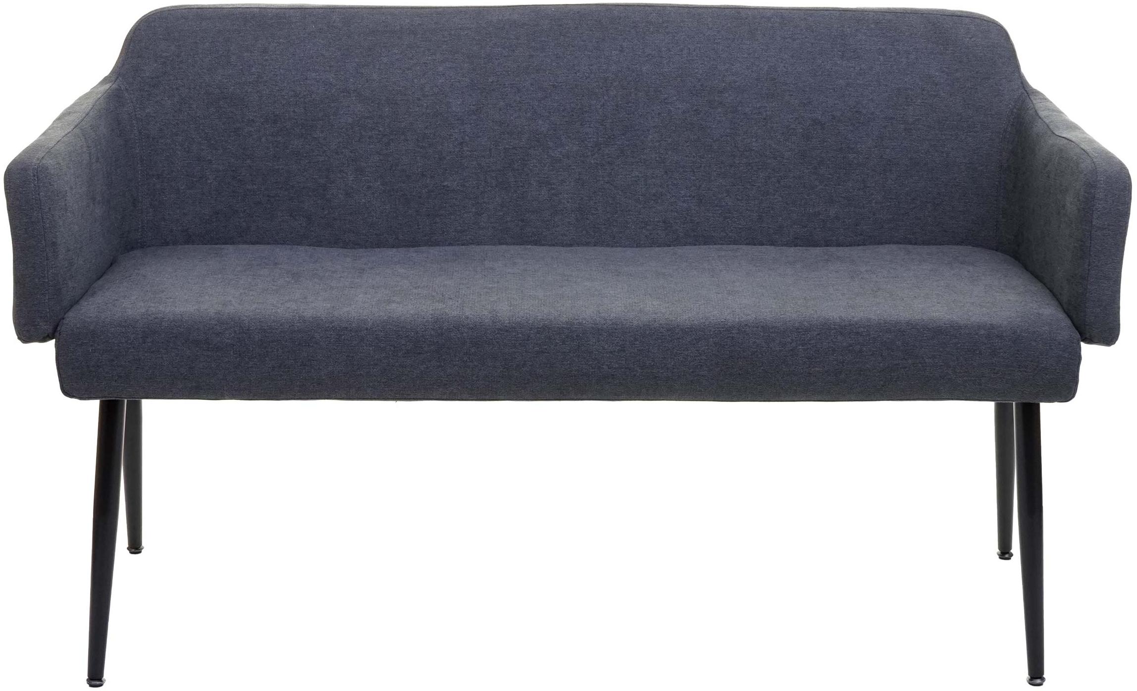 Diese stilvolle Sitzbank HWC-L13 überzeugt durch ihr modernes Design und hohen Sitzkomfort. Mit einer maximalen Belastbarkeit von 240 kg und einer hochwertigen Stoffqualität von 298,5 g/m² ist sie ideal für Esszimmer, Wohnzimmer, Küche oder Flur. Die Bank verfügt über eine Rückenlehne und Armlehnen, die für zusätzlichen Komfort sorgen. Abgerundete Sitz- und Rückenflächen sowie die stabilen, mattschwarz lackierten Stahlfüße runden das Gesamtbild ab. **Highlights** - Schraubfüße zum Ausgleichen von Bodenunebenheiten - Maximale Belastbarkeit: 240 kg - Hohe Stoffqualität: 298,5 g/m² - Modernes, schlichtes Design - Mit Rückenlehne und Armlehnen **Produkteigenschaften** - Maße (HxBxT): 77 x 56 x 133 cm - Sitzhöhe: 48 cm - Sitzbreite: 120 cm - Sitztiefe: 43 cm - Höhe Rückenlehne (vom Sitz aus gemessen): 31 cm - Höhe Armlehne (vom Sitz aus gemessen): 18 cm - Breite Armlehne: 6 cm - Beinhöhe: 37 cm - Dicke Sitzpolster: 9 cm - Dicke Rückenpolster: 6 cm - Material: Bezug: 100% Polyester (298,5 g/m²), Rahmen: Eukalyptusholz, Polsterung: Schaumstoff (100% Polyurethan), Beine: Stahl, mattschwarz lackiert - Farbe: Bezug: anthrazit, Beine: schwarz **Lieferumfang** - Sitzbank HWC-L13 - Montageanleitung - Schraubfüße zum Ausgleichen von Bodenunebenheiten