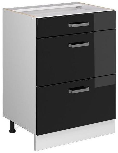 Küchenunterschrank R-Line Schwarz Hochglanz 60 cm mit Schubladenohne Arbeitsplatte Vicco