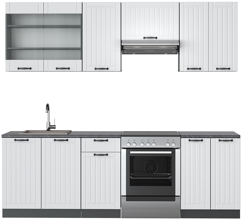 | Name | Küchenzeile Fame-Line Weiß Landhaus/Anthrazit 240 cm ohne Arbeitsplatte Vicco |