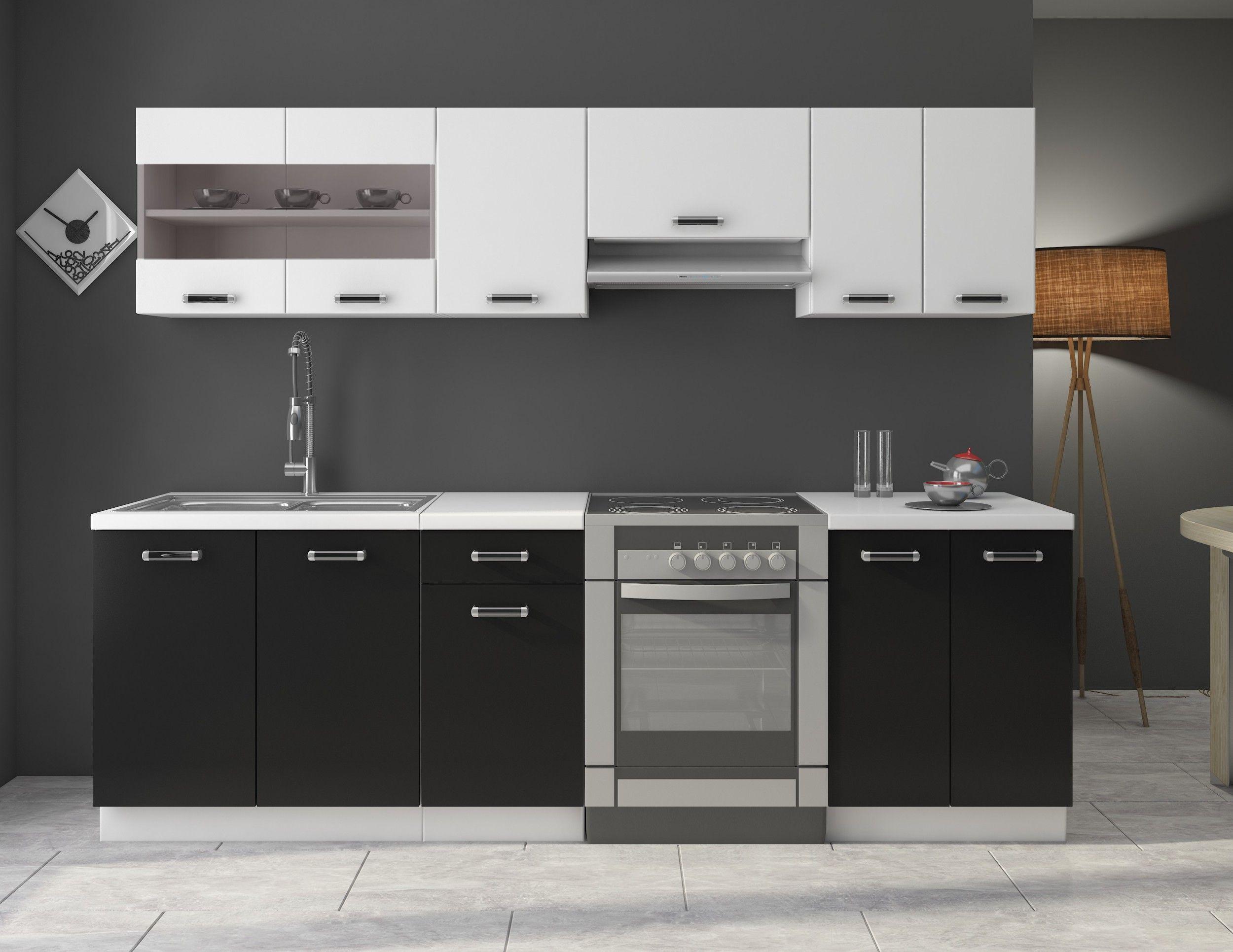 | Name | 'Omega 240 cm' Küchenzeile, variabel stellbar, Schwarz/Weiß |